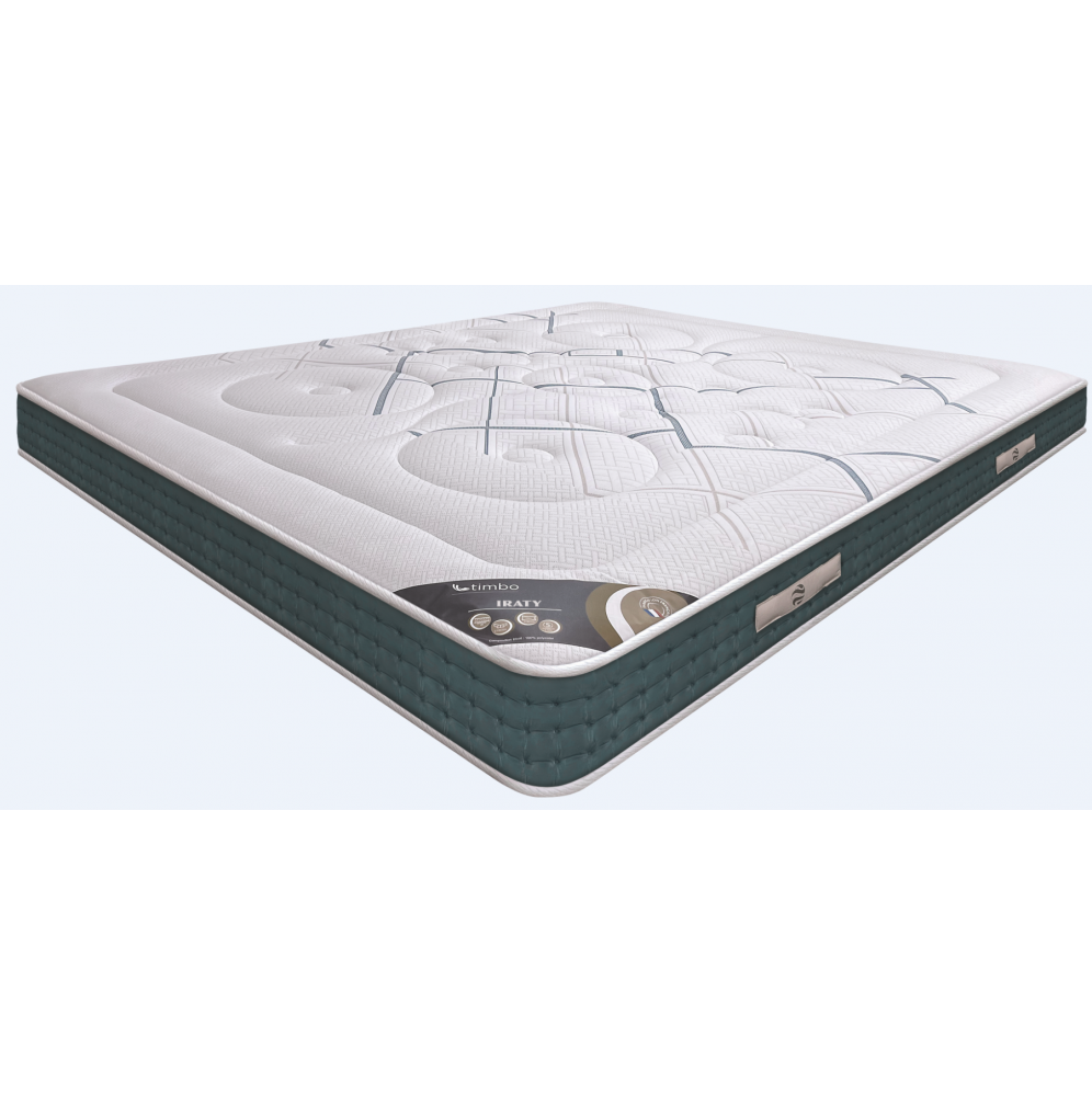 Le matelas Iraty propose un soutien ferme et un accueil dynamique, parfait pour ceux qui recherchent une literie tonique avec un bon maintien. Gamme TIMBO (commercialisée par ANDRE RENAULT)