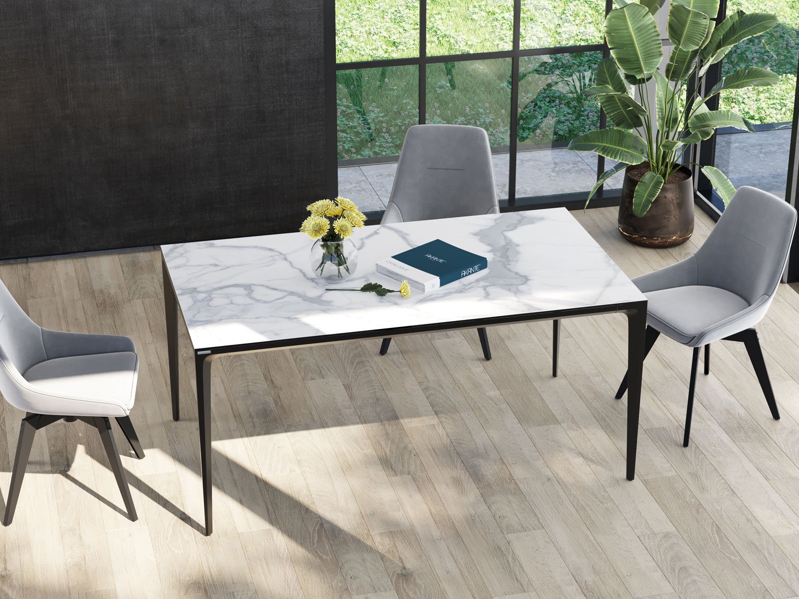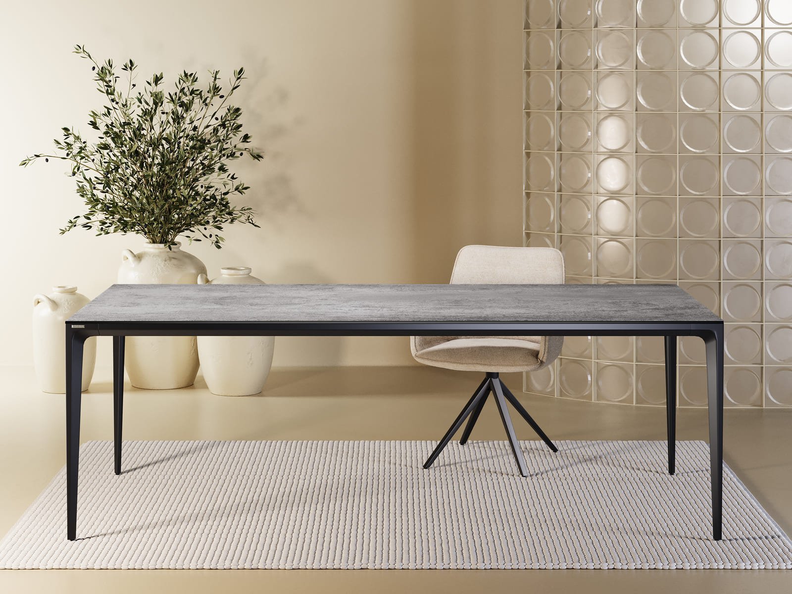 Table Valencia Gd modèle- Plateau céramique- pieds acier noir