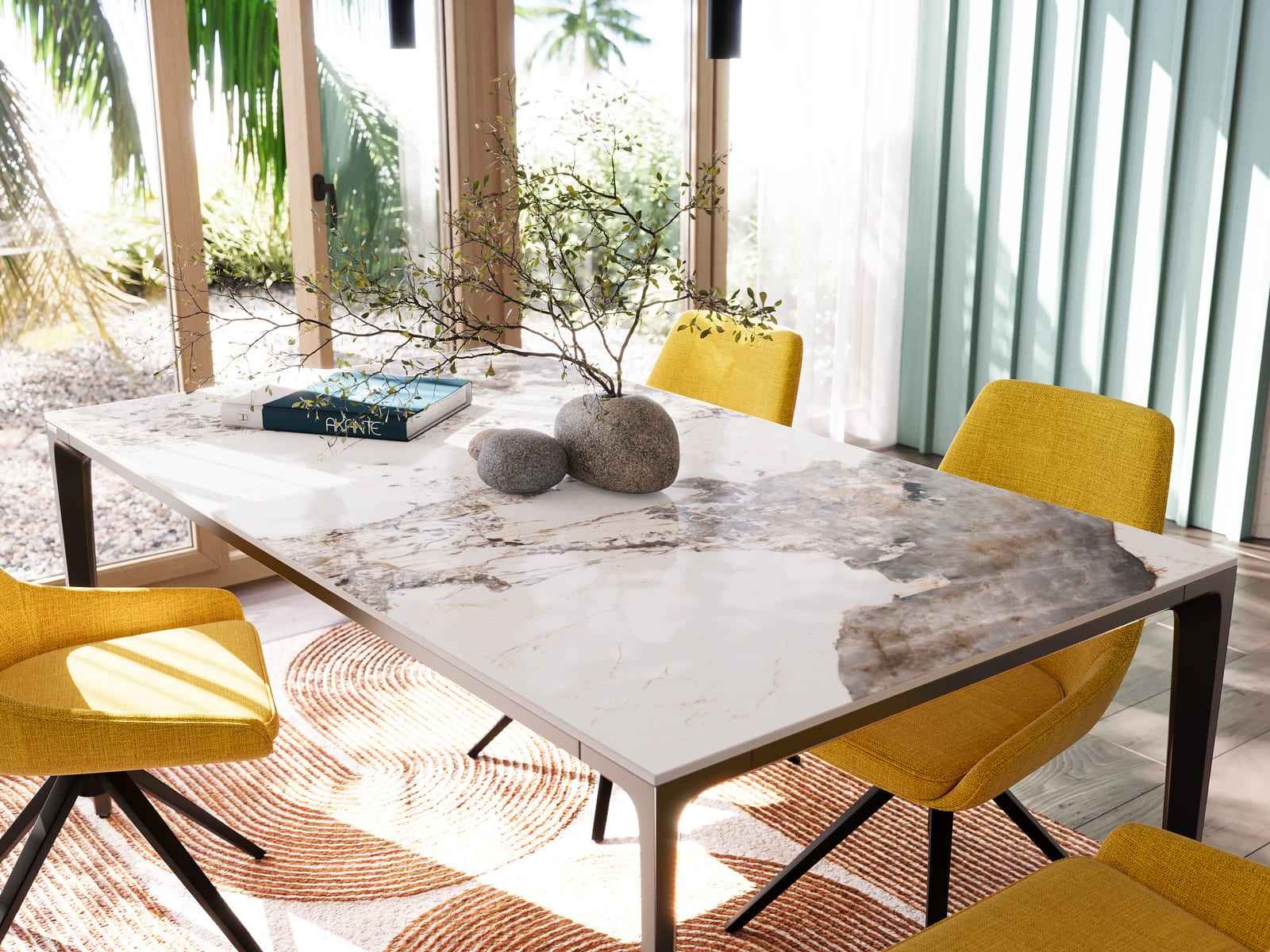 Chaque plateau en céramique est une création unique. En raison du caractère naturel du matériau et du procédé d’impression des effets marbrés, il peut exister de subtiles variations de couleur ou de veinage d’un échantillon à l’autre. Ces nuances font partie du charme et de la singularité de votre table, en rendant chaque modèle véritablement exclusif.