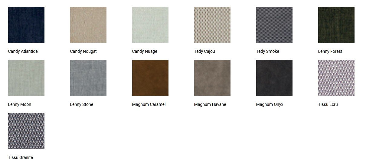 - Revêtement : tissu capitonné (100% polyester), toucher velours ou tissu lisse au choix